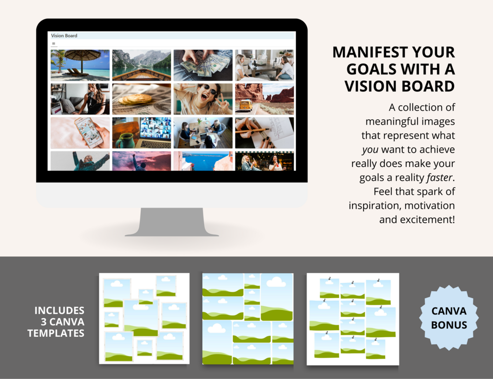 → Vision Board to keep you motivated (including 3 bonus Canva templates)