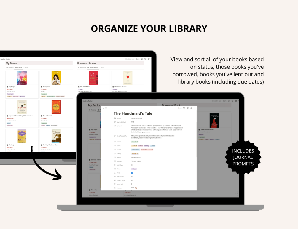Notion template for sorting and organizing all of the books in your library and tracking your reading goals.